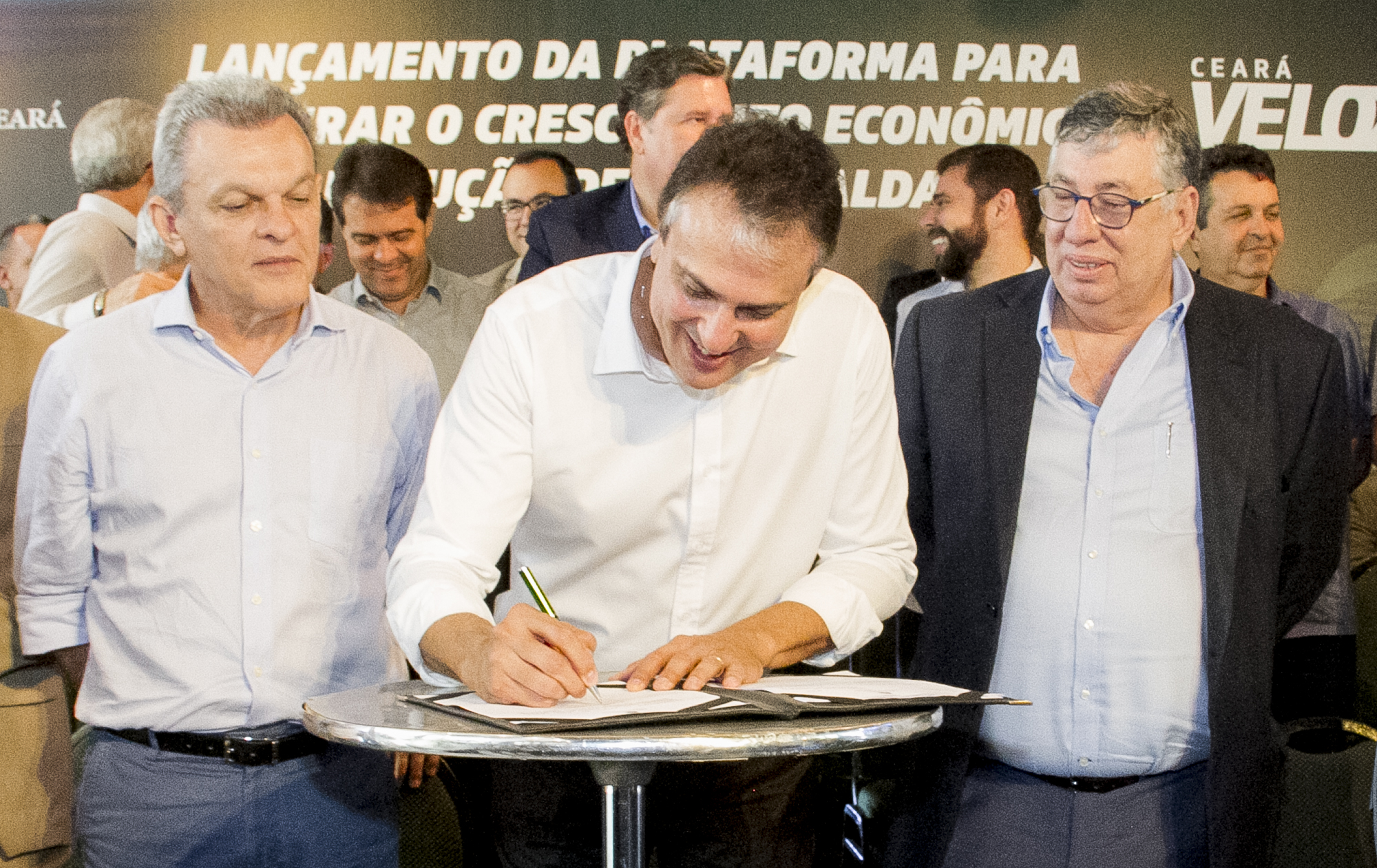 Representantes da sociedade civil, poderes públicos, entidades de classe e setores produtivos estiveram na manhã desta segunda-feira (25) no Palácio da Abolição, em Fortaleza, para o lançamento da Plataforma para Acelerar o Crescimento Econômico com Redução de Desigualdades, que faz parte do Programa Ceará Veloz, do Governo do Ceará. O intuito da plataforma é criar um ambiente de negócios favorável ao crescimento econômico e, consequentemente, reduzir as desigualdades econômicas e sociais no estado.